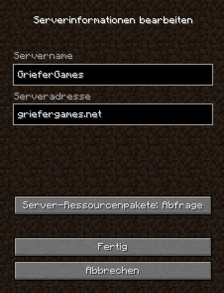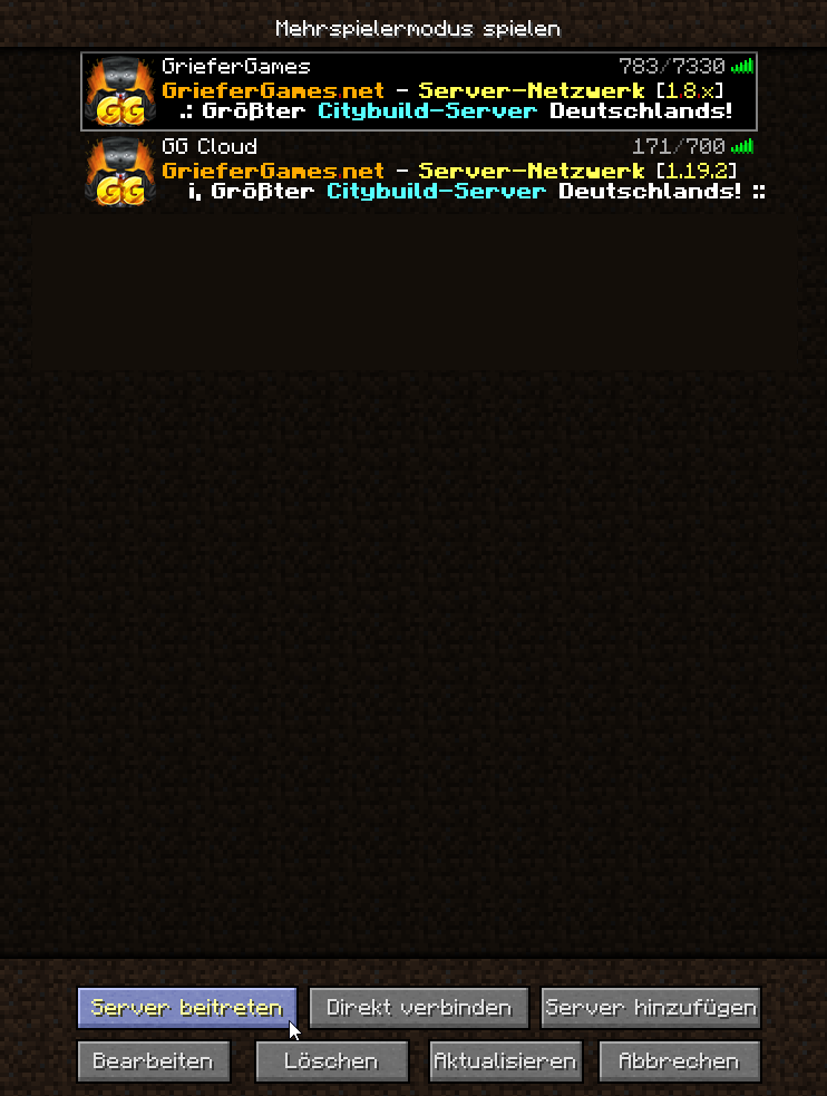 * Serveradresse: `griefergames.net`&#x20;